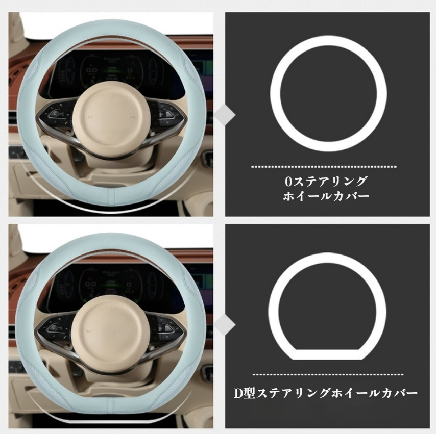 車のステアリングホイールカバー超薄型アイスシルク夏D型/ O型吸汗・滑り止め四季ユニバーサルハンドルバー保護カバー