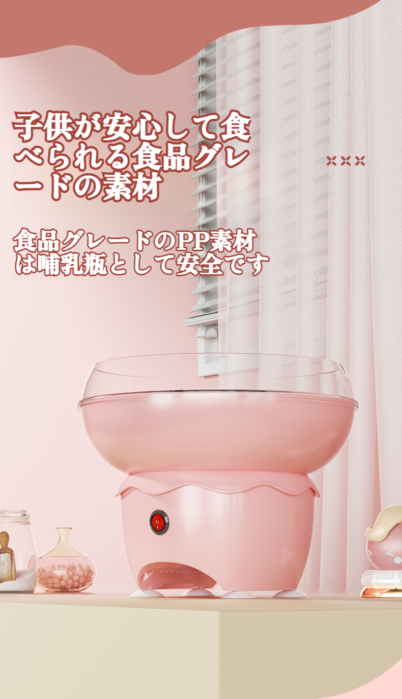 ファンシーカラーの家庭用全自動綿菓子機正面写真